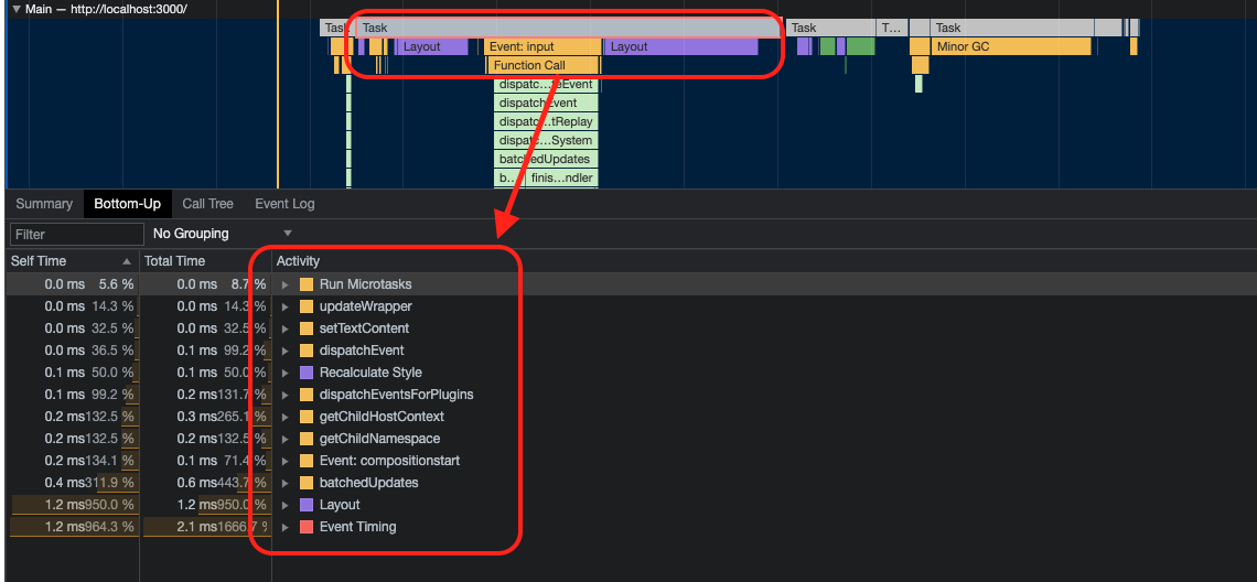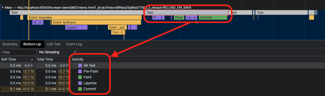 입력이벤트가 발생하고 Layout → Paint → Commit 과정을 통해 화면을 재조정하는것을 알 수 있다.