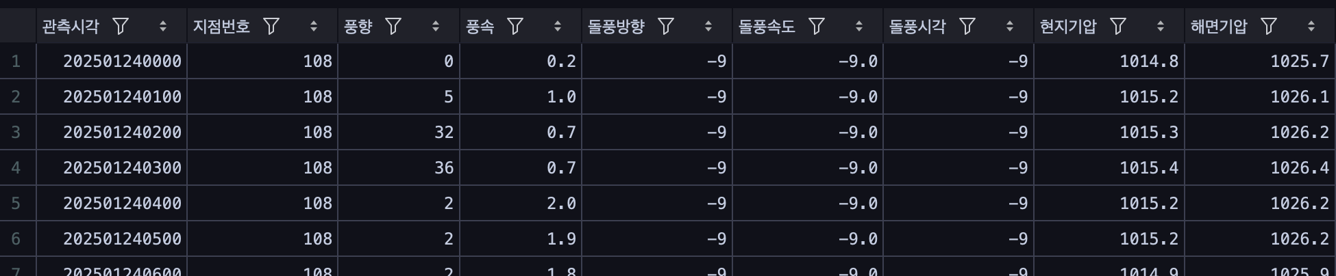 - 서울 지역 날씨 데이터