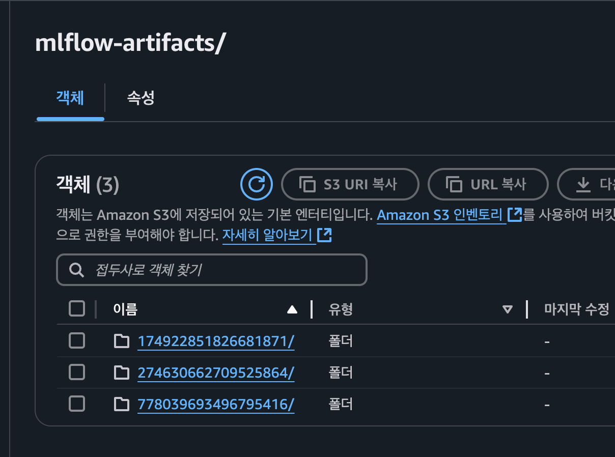 모델 저장을 위한 Storage로는 S3를 선택하였습니다.